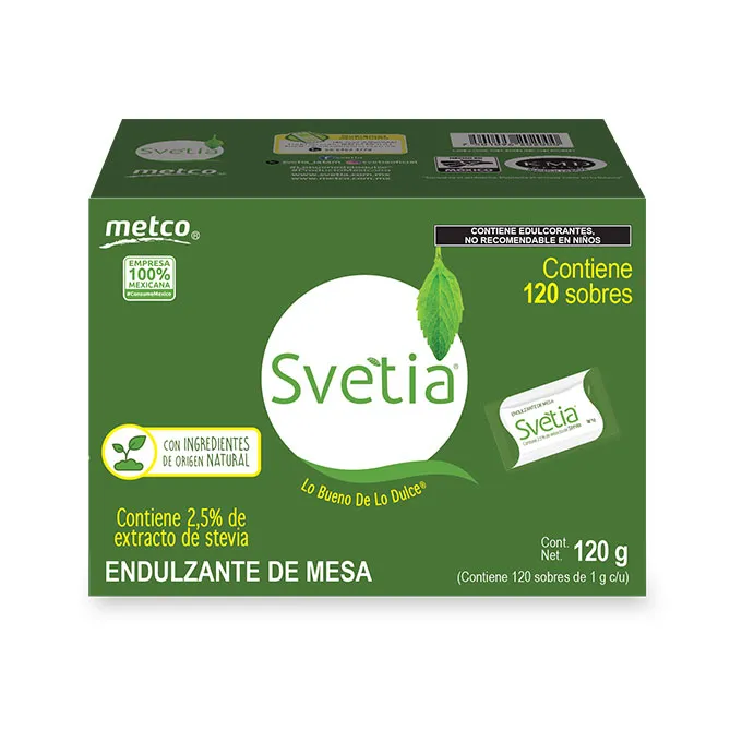 Un edulcorante completamente natural, libre de calorías, elaborado exclusivamente a partir de la planta de Stevia, originaria de Sudamérica en su forma más pura; se destaca por su capacidad para no afectar los niveles de insulina en la sangre. Ideal para cuidar tu salud y disfrutar de tus alimentos favoritos sin preocupaciones.